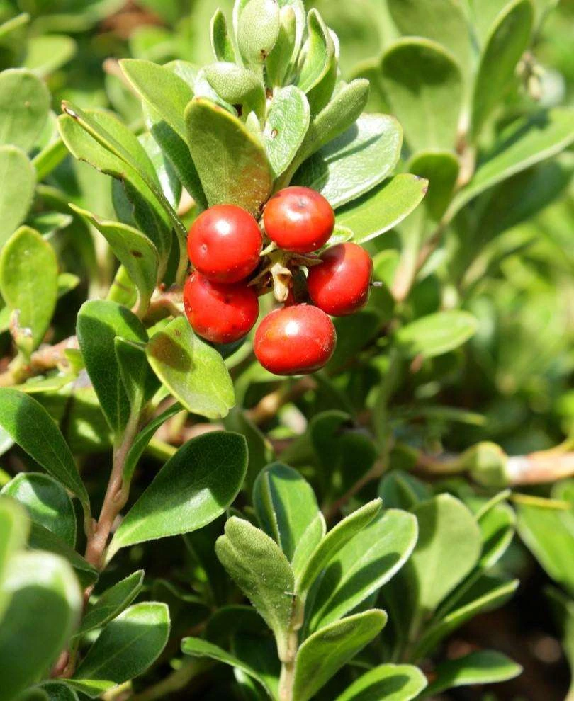 This native evergreen ground cover thrives in well-drained soils, even in sand. It needs little care. Prostrate trailing branches thickly covered with small, dark green leaves yield white or pink blossoms in late spring. Bright red edible berries follow, lasting well into winter. Native Americans valued the berries as food and the leaves in smoking mixtures, though now the fruit is most often eaten by birds. It is a beautiful way to cover a lot of ground in a hurry.